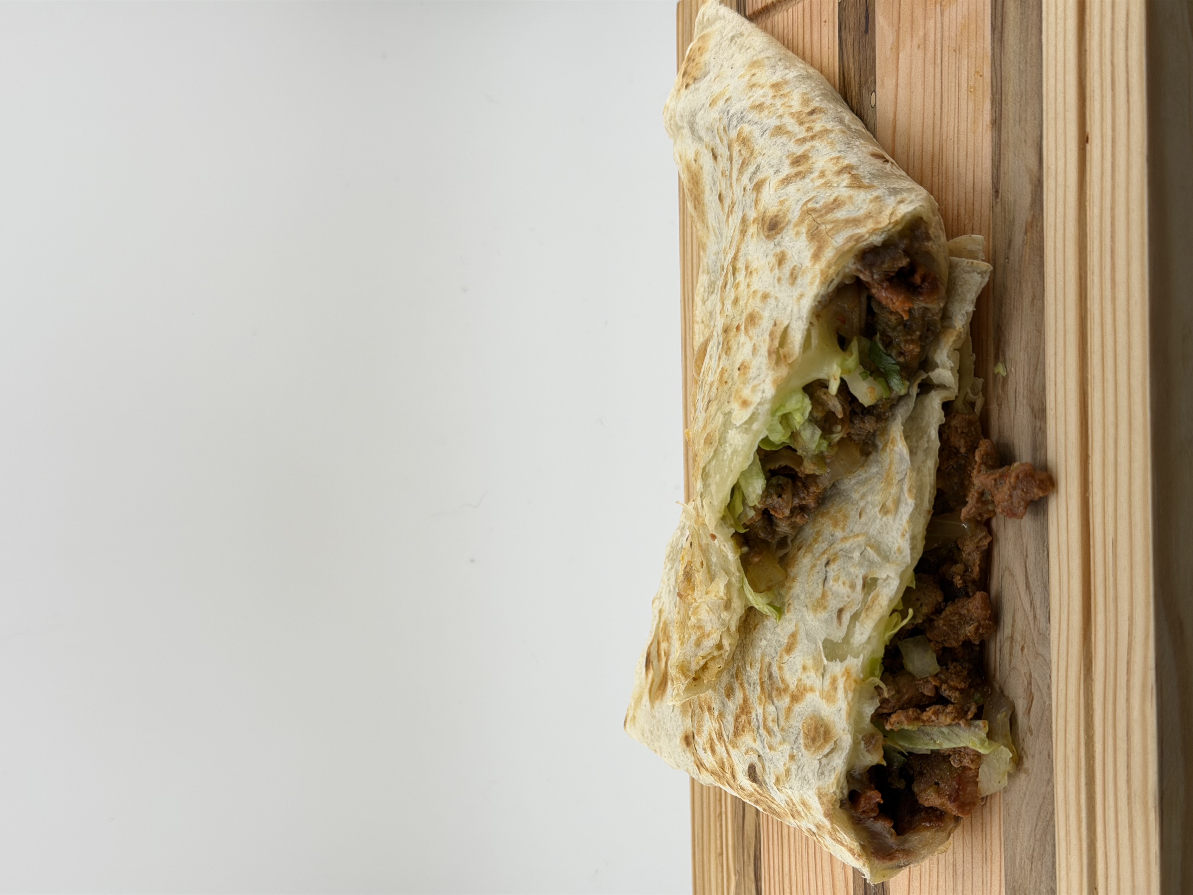 Tortilla de harina, carne, queso, crema y salsa.